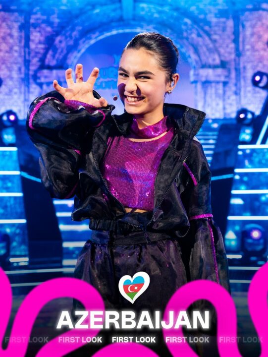 The representative of Azerbaijan, Yağmur, made the stage vibrate with her catchy song “Miau Miau,” turning the performance into an explosion of urban energy. From the very first moment, the street-style aesthetic dominated the scene: purple, green, and blue tones, graffiti everywhere, and four or five trash containers as props, integrated into a choreography full of attitude.