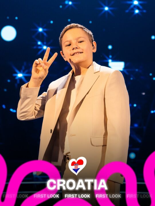 It was Croatia’s turn with Marino Vrgoč, who, with his song “Snovi,” transformed the stage into a visual journey full of sensitivity. Dressed in an impeccable white suit, Marino appeared alone on stage, elevated on a circular platform that became the center of all attention.