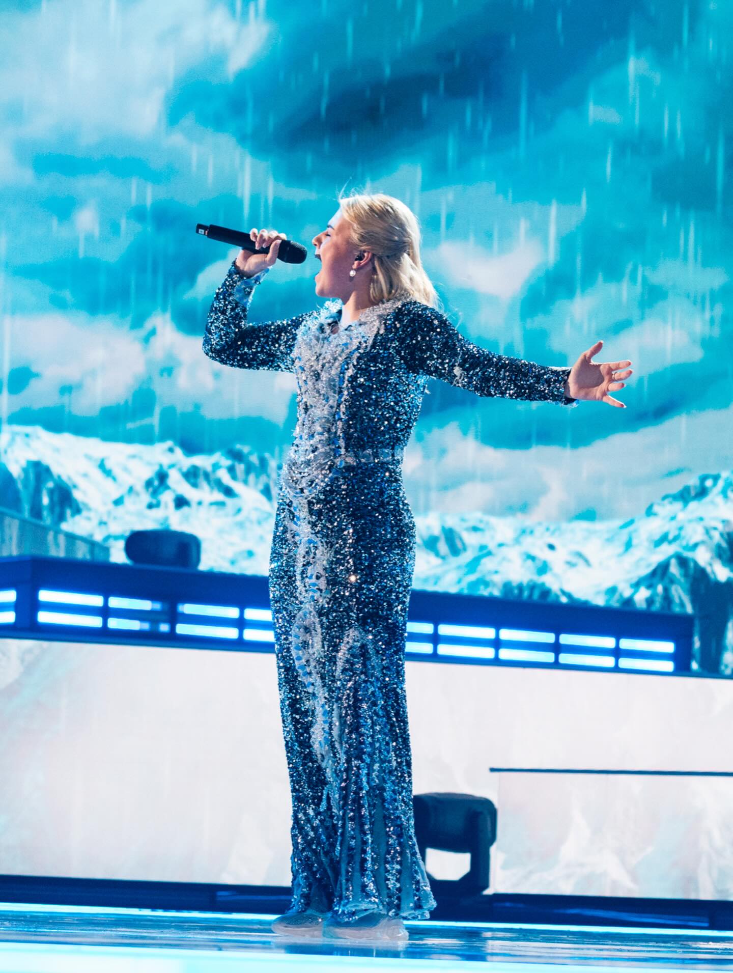 The Polish representative Marianna Kłos with her song “Brightest Light” closed the rehearsal day in Tbilisi. In yet another performance, cool colors and white costumes were the protagonists. The singer wears a large, voluminous white dress, with the artist elevated on the stage.
