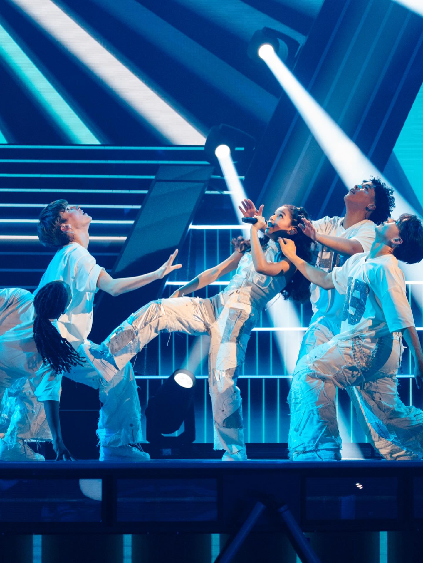 The next to take the Eurovision stage in Tbilisi was Meadow, the representative of the Netherlands, with her song “Freeze.” The Dutch proposal is renewed compared to their national selection, choosing white as the main color for the wardrobe of the singer and her dancers. Despite the update, the outfits maintain their sporty essence, in the style of ‘High School Musical,’ with numbered tops and pants with many pockets.