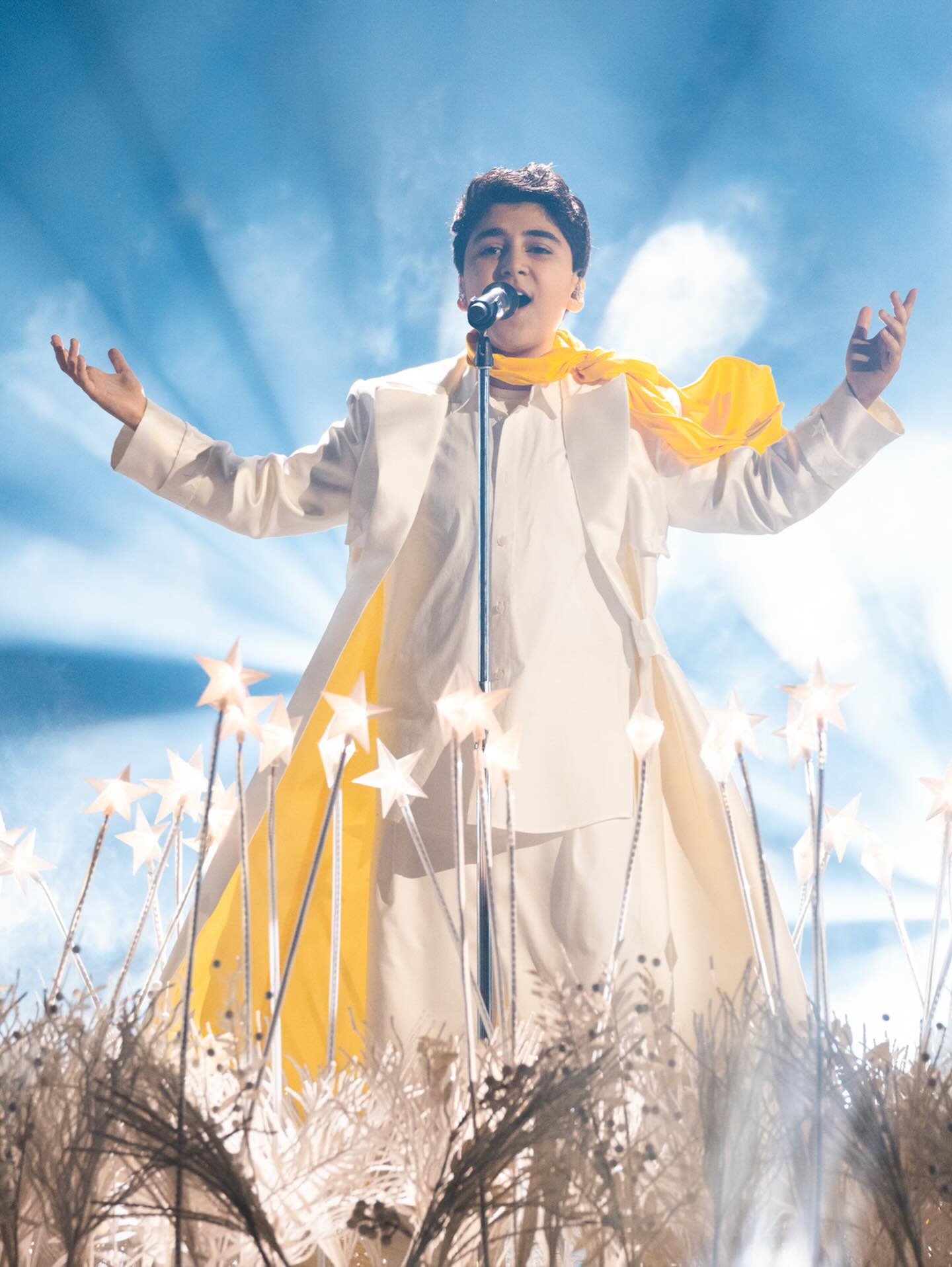 The proposal from Armenia came from Albert, who with his song “Brave Heart” filled the stage with magic and delicacy. Dressed in a white suit and accompanied by a yellow scarf very similar to the one in the music video, Albert stood on a platform decorated with white flowers and stars, which lit up evoking a meadow of grass under a starry sky.