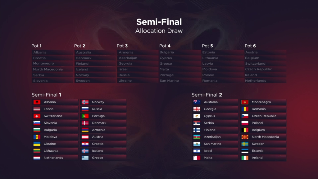 You can find which countries will perform in each Semi-Final below: