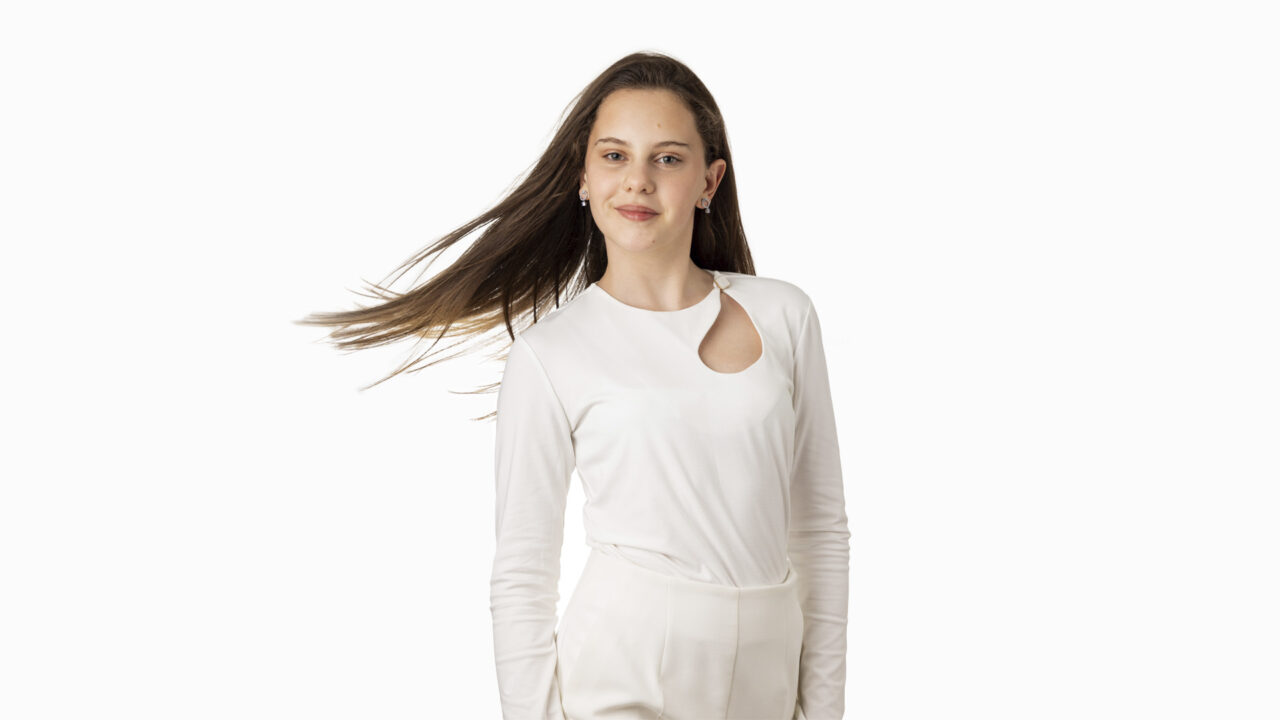 Asja Džogović is a 13-year-old Montenegrin artist born in 2012 in Bijelo Polje, in the north of the country. Her parents, Almir and Elida, and her older brothers, Dajlan and Damir, discovered her talent when, as a very young child, she could reproduce any song with precision. At the age of seven, she began her training at the D-moll singing school in Podgorica, led by musician Danijel Alibabić, while attending eighth grade at Risto Ratković Primary School. Her first public performance was at the children’s festival Naša radost in Podgorica, where she won the prize for best lyrics with Dio neba.